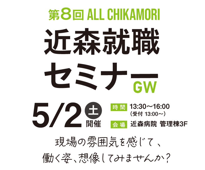 下記「近森就職セミナー申込みフォーム」より事前登録をお願いします。