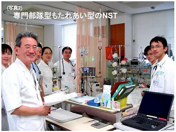近森病院⁽¹⁾の栄養サポートチーム(以下、NST)の活動が開始されたのは2003年の7月で、その1年半前に近森病院に来て下さった管理栄養士の宮澤靖(現 栄養サポートセンター センター長、臨床栄養部 部長)を中心として褥創対策に取り組んで頂き、その実績から部科長会で脳外科の部長からNST発足の提案がなされました。以後、私がNST Chairmanとなり、管理栄養士を中心とした栄養サポートを展開してきましたが、最初のうちは、管理栄養士はメディカルスタッフとして違和感があったのは事実でした。この9年間、宮澤部長と試行錯誤を繰り返しながら、マンパワーを増やし、質を上げ、チーム医療の形も変えながら、日本でも有数のNSTに成長してきました。それと共に、近森病院338床で17名の管理栄養士はいきいきと病棟で栄養サポートに従事してくれており、名実共にメディカルスタッフに成長してくれたと思っています。