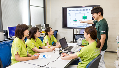 - NST教育カンファレンスでは、集中病棟の患者さんを対象とした医師からのレクチャーが行われます。検査値や画像の見方、病態と薬剤を結び付けるために必要となる医療の基本的知識、病棟や外来で日常的に使用する医療の共通用語などを学び、1日も早くチーム医療の一員となれることを目指します。