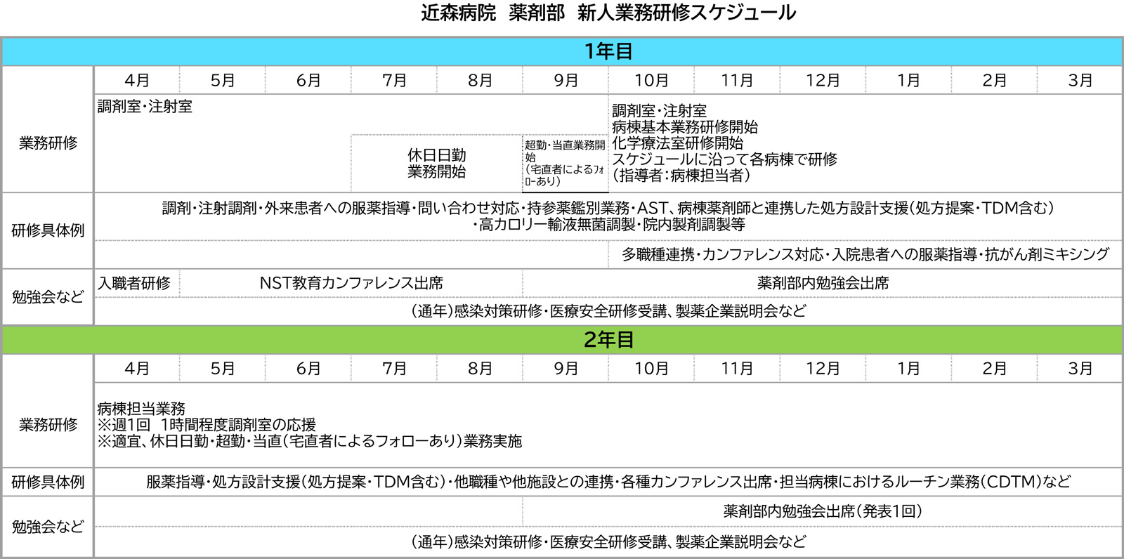 近森病院 薬剤部 初期薬剤師研修スケジュール