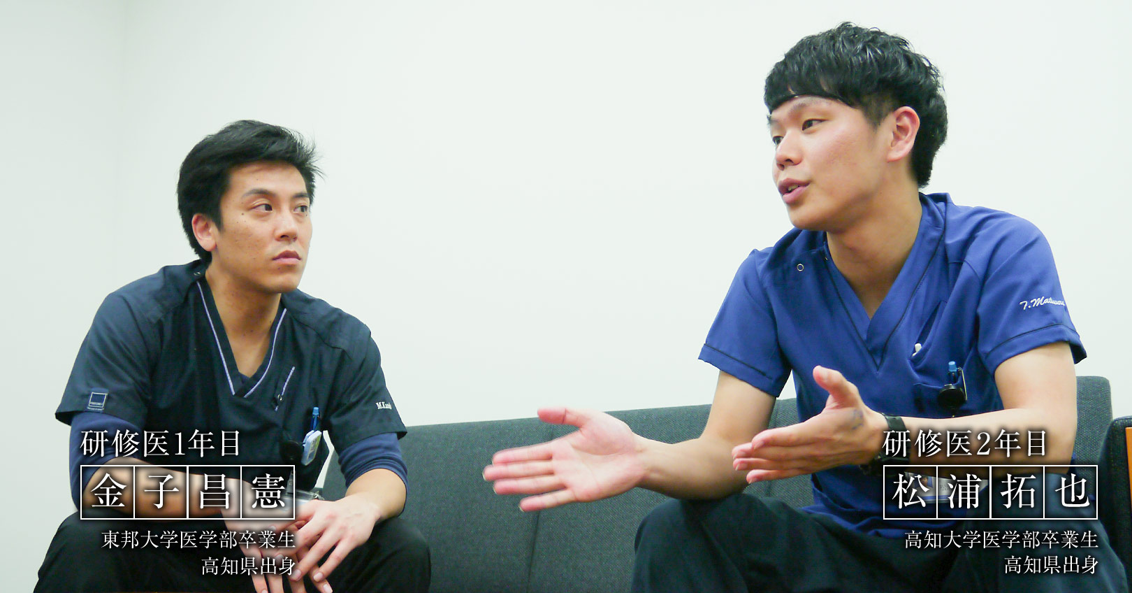 高知県の合同説明会って特徴的やったよね。なんか気楽な感じで楽しく話を聞けたのが印象的やったし、とにかくブース内の雰囲気が良かった。それが僕の一番の決め手やった。複数の病院の研修医が一緒に説明しているブースってあんまりなくて。ライバルって感じじゃなく、高知県全体が同期って感じがした。