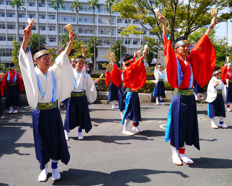 私は去年もよさこいに参加したけど、看護師さんやPTさんとかと一緒によさこい楽しんだき、今年も出たくって申し込んだがよ!8月の本祭がほんま最高に楽しいき!!去年参加してここで色んな職種の友達が出来たし、よさこいの後も病棟とか外来でも会うことが多くて、すごく仕事しやすくなったがやき!!二人もいっぱい友達つくりよ!!