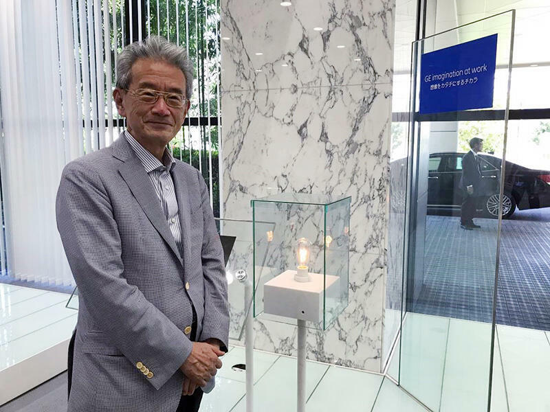 最後に、本社玄関横には京都石清水八幡宮の竹で作ったトーマス・エジソンのオリジナルの白熱電球が展示されており、その柔らかくて温かい光に長い歴史を思い感動していると社長から「こんなに興味を持って見て下さったのは先生が初めて」と言われてしまった。