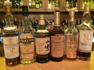 すべて飲むときはハーフショットの水割りだが、飲むにつれていいお酒ほどおいしくなって違いが分からなくなる。最終的に日本の「山崎」とアイリッシュの「ミドルトン」、「カバラン」で悩んでしまった。結局一口目の印象が当たっていた。苦もなく分かると思っていたがとんでもなかった。しかも、スコッチはスペイサイドの「マッカラン」、カナディアンは「カナディアンクラブ」、バーボンは「ワイルドターキー」とそれぞれの国の代表的なウイスキーがそろっていた。