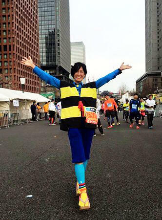当日の長女の出で立ちは「ゲゲゲの鬼太郎」の衣装を身にまとい、頭に「目玉おやじ」、「一反木綿」を背に、一本歯下駄を履いて走った。応援する我々は六本木のドンキホーテで揃えた黄色で統一したピカチュウの帽子に指さし棒、メガホンなので互いによく目立つ。応援していると普通のランナーよりも、仮装して走ってくれると面白い。ちょっと挙げるだけでも大石内蔵助、トマト姿、ピコ太郎、リオのカーニバル姿の男性、赤い矢印のついた帽子、シマウマ、走るのもたいへんだろうが、その方が見ていて楽しめるしつい応援してしまう。長女と相前後して走っていた仮装組のランナーは、応援のいい目印になって助かった。