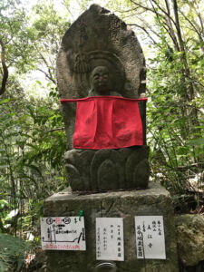 それでも歩き慣れてくると、大事な分かれ道や石仏のおられる手前には赤や白の長めのビニールテープを束にして目印にしてくれていることが分かってきたし、石仏の赤い前掛がなによりも目立つので石仏を見つけやすくなった。