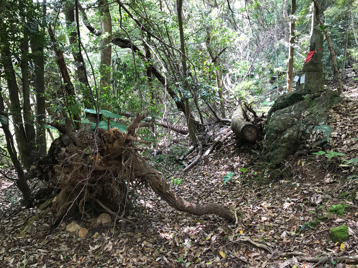 山道は網の目のように四方八方に通じているが、分かれ道と遍路道の途中には赤のテープで印をつけてくれており、それを目安に安心して進んでいくことができた。それでも8番熊谷寺と9番法輪寺への分かれ道はなだらかで気持ちの良い竹林の途中にあり、ついうっかり見落としてしまったし、15番国分寺では道の右側に石仏がおられるのに左側の根っこから倒れた倒木に気を取られて通り過ぎてしまい、かなりの道を引き返すこととなった。