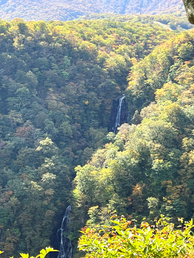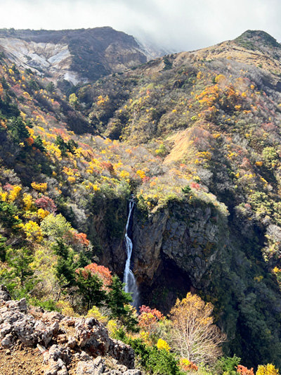 頂上直下の不帰の滝では紅葉が真っ盛りです。