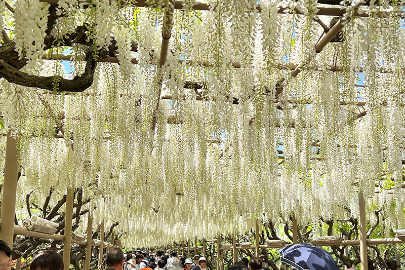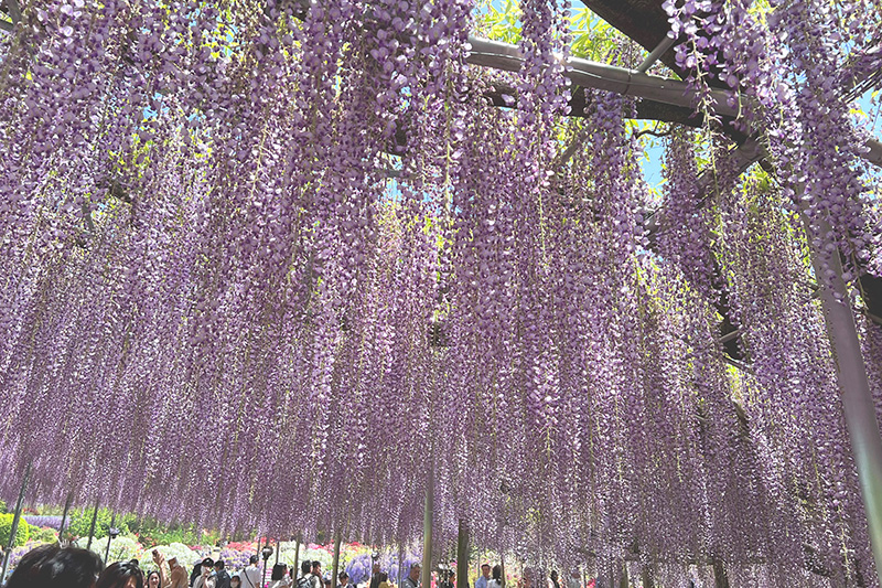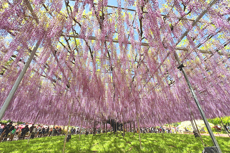 藤の咲く季節に、あしかがフラワーパークにぶらりと行って来ました。4月下旬~5月上旬の藤ばかりでなく、夏~秋にはさまざまな花が咲きこぼれ、冬には日本三大イルミネーションの1つ「光の花の庭」が有名です。なかでも大藤は圧巻で、CNNが選出した「世界の夢の旅行先10選」に日本で唯一選ばれています。